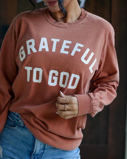 Grateful To God Comfort Colors Long Sleeve Graphic Tee